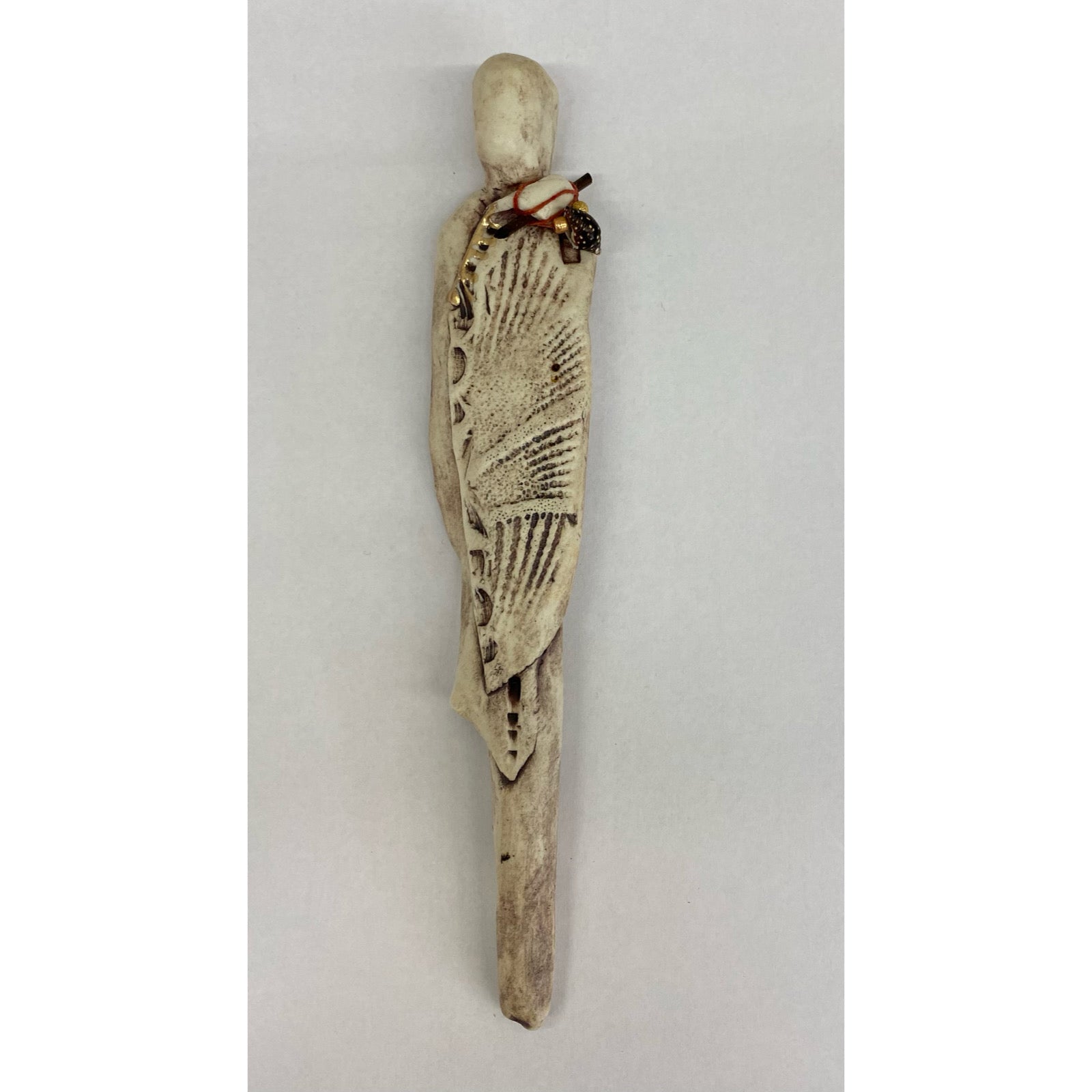 9 in. tall, gold enamel, bamboo adorned with tiny speckled shell & gold beads